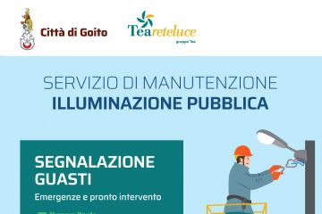 Si informa che dal 1° gennaio 2026, la manutenzione dell'illuminazione pubblica verrà effettuata da TEARETELUCE. Per segnalazione guasti o informazioni: Numero Verde : 800637637 mail:...