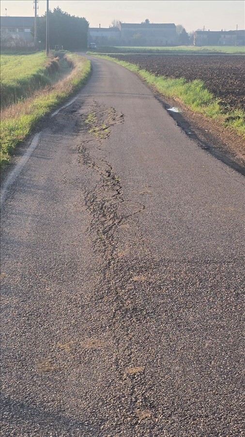 in Strada Mussoina indicativamente tra stalla ed ex piscina cedimento manto stradale come da foto