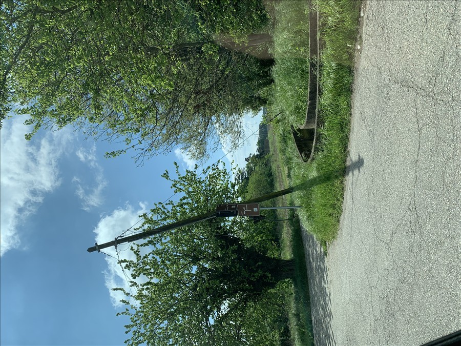 Palo della luce piegato dal vento che pende verso la strada (vedi foto)