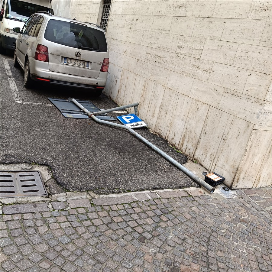 Domenica 25 Gennaio durante il Mercato e ceduta la struttura che tiene un cartello in via XXVI APRILE incrocio con contrada Curtatone Montanara cadendo a poca distanza da un banco di un ambulante