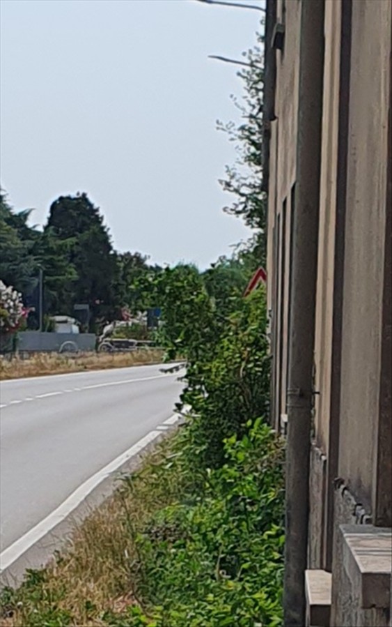 Erbacce ormai ricresciute, adiacenti allo stabile, sulla statale, vicino allo stop che ostruiscono la visibilità x l attraversamento a Cerlongo, da Piazzale Pio X a Via Chiesa