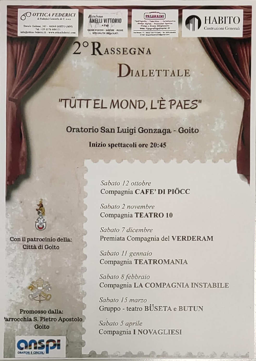 2°Rassegna Dialettale: "TÜTT EL MOND, L'È PAES", presso l'Oratorio San Luigi Gonzaga - GOITO.