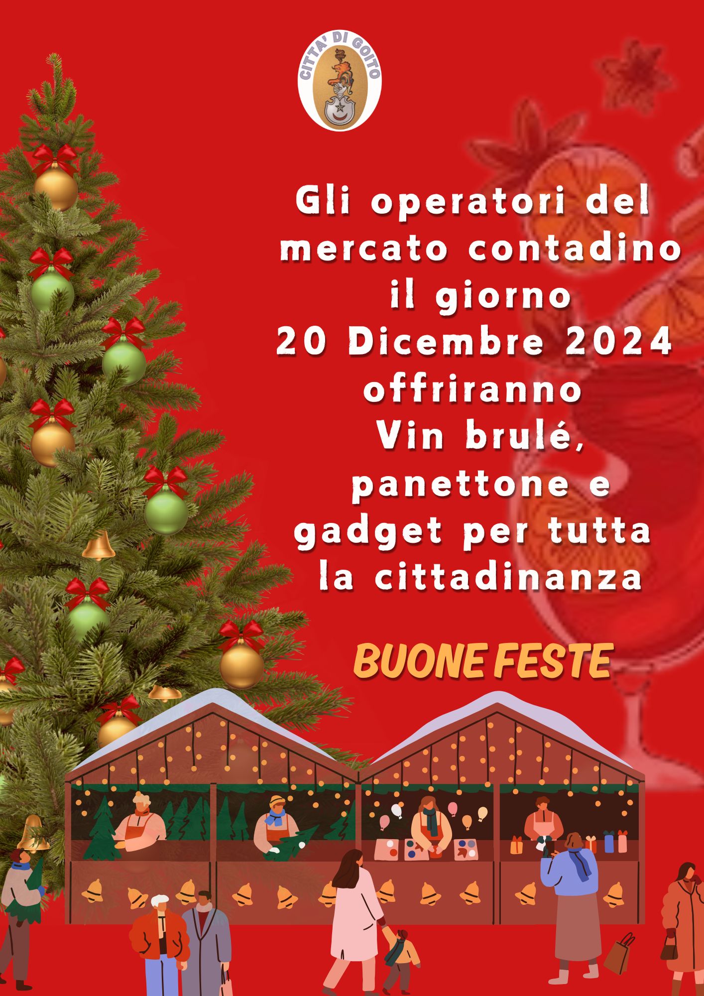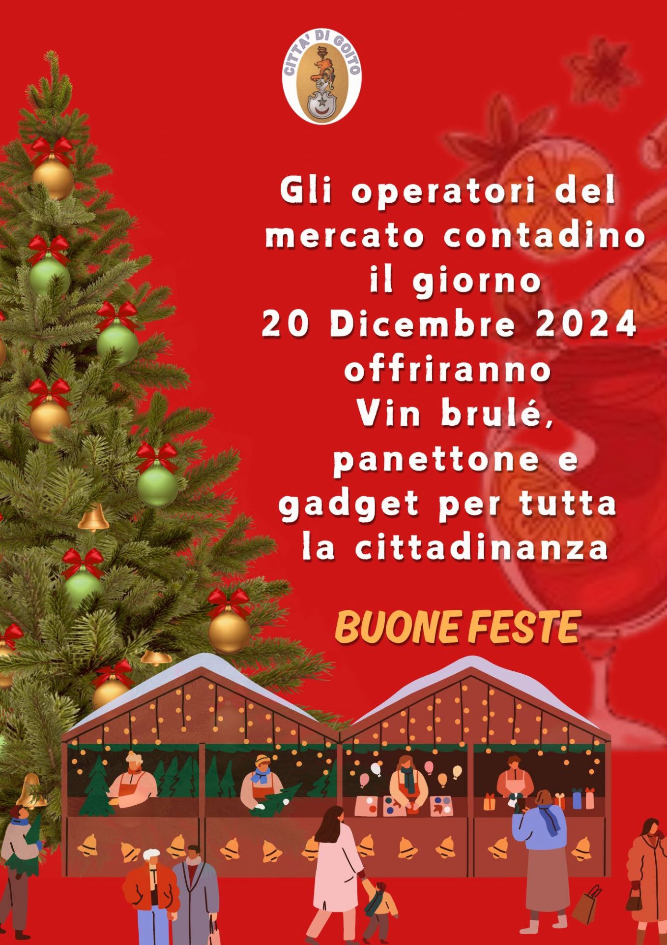 gli operatori del Mercato Contadino offriranno vin brulè, panettone e gadget alla cittadinanza.