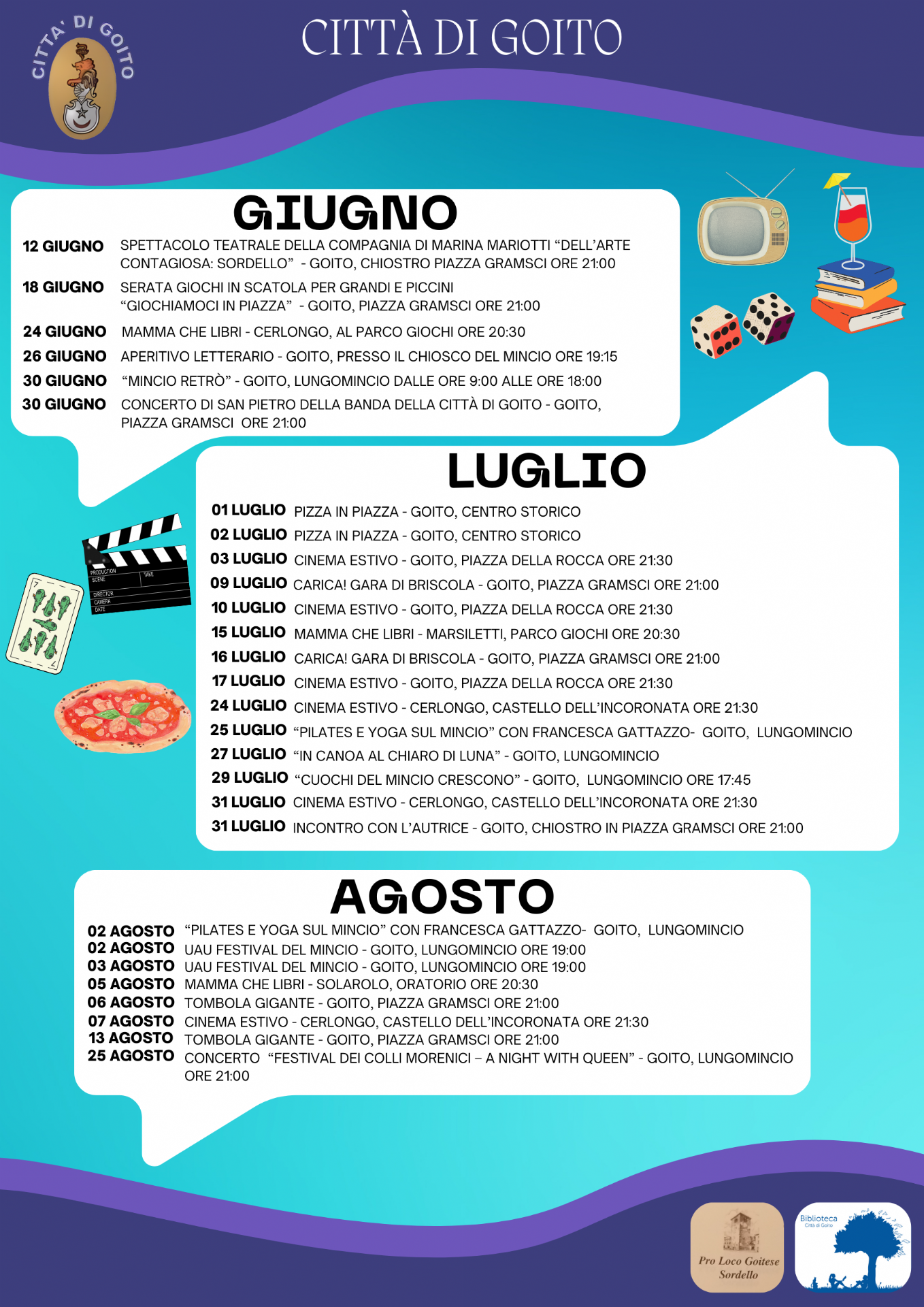 Si pubblica in allegato il calendario degli eventi estivi che si effettueranno a Goito