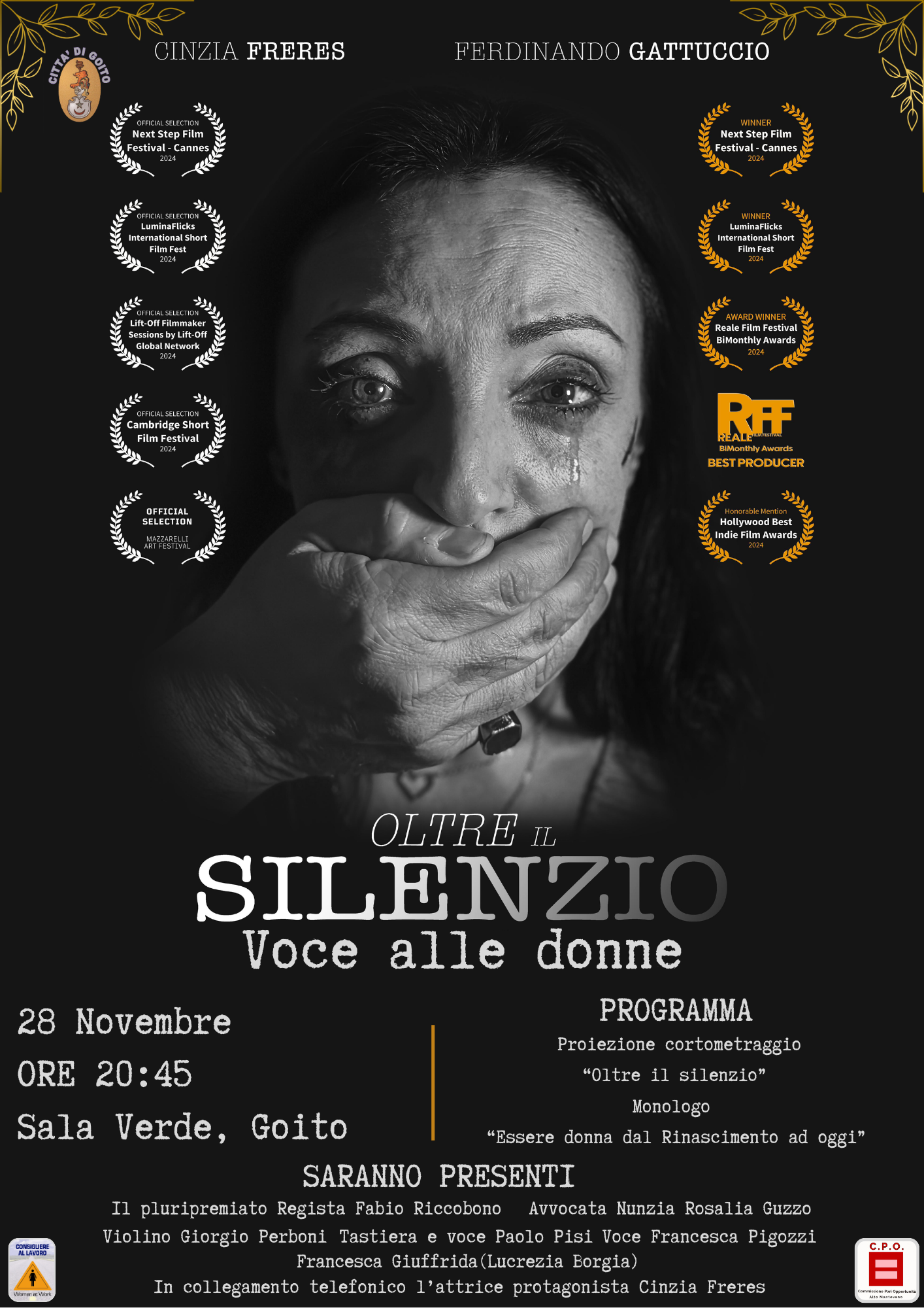 Giovedì 28 Novembre, alle 20:45 in Sala Verde a Goito, vi aspetta il cortometraggio "Oltre il silenzio" del pluripremiato regista Fabio Riccobono.