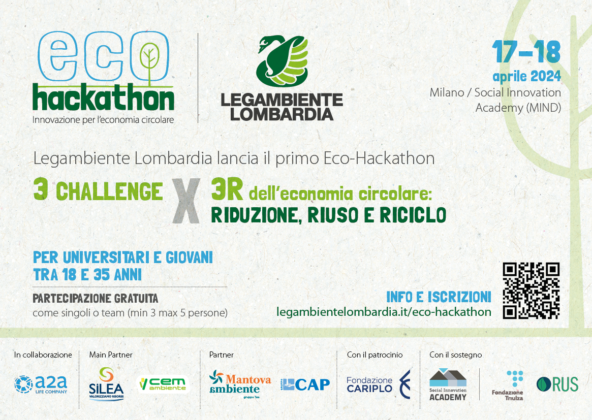 Legambiente Lombardia promuove per il 2024 un innovativo evento dedicato all’economia circolare: EcoHackathon. Si tratta di una maratona progettuale lunga due giorni in cui giovani e universitari si sfideranno per sviluppare soluzioni creative per promuovere l’economia circolare.