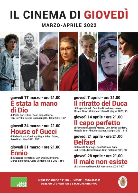 Dal 17 marzo al 28 aprile, ogni giovedì verrà proiettato un film in Sala Verde a Goito.