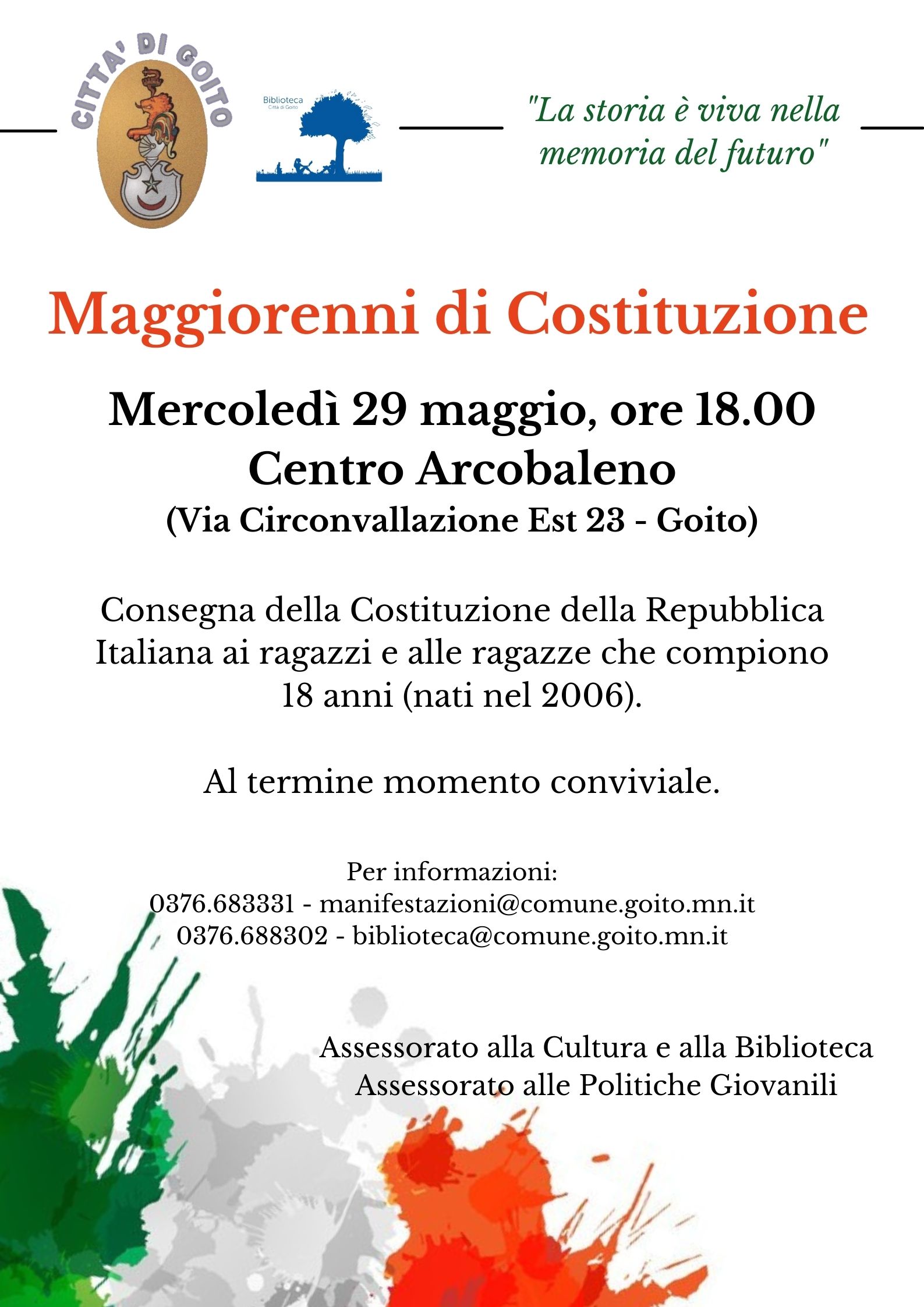 Consegna della Costituzione ai ragazzi e ragazze che compiono 18 anni.