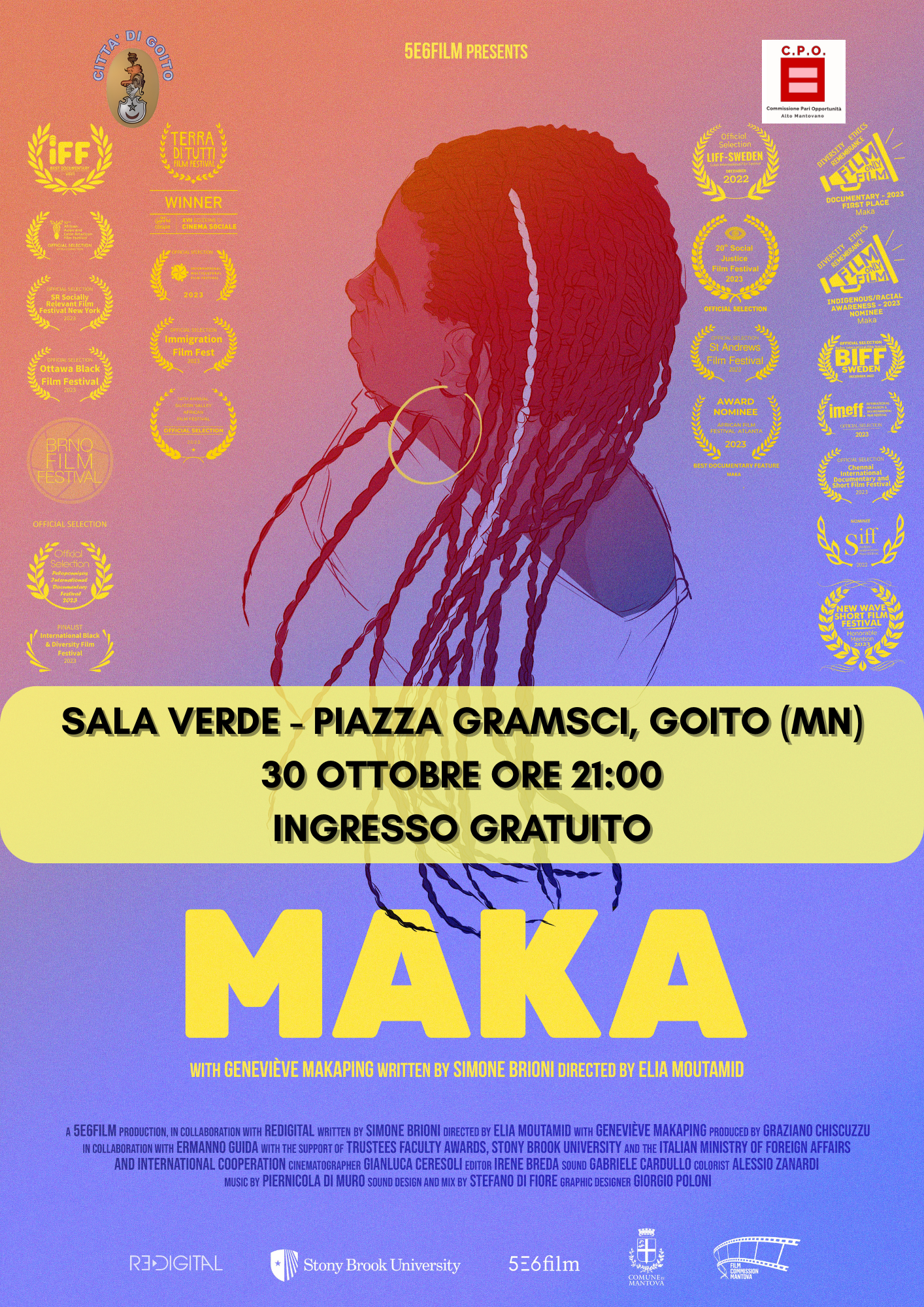 Questo documentario, dove troverete scene girate a Goito, ispirato alla biografia e al pensiero di Maka racconta la sua dolorosa storia di migrazione dal Camerun attraverso il deserto, l’arrivo in Calabria nel 1982, il successo come giornalista e conduttrice televisiva, e il recente trasferimento e l’attuale attività di insegnante a Mantova.