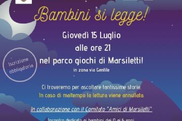 Giovedì prossimo, il 15 Luglio, aspettiamo tutti i bambini da 0 a 6 anni nel parco di Marsiletti alle ore 21.