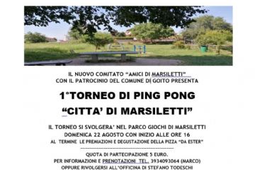 Il torneo si svolgerà nel parco giochi di Marsiletti Domenica 22 agosto 2021 dalle ore 16.00