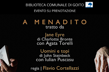 MERCOLEDI 25 AGOSTO 2021 ALLE ORE 21,00 PRESSO LA BIBLIOTECA COMUNALE IN VIA DANTE ALIGHIERI 47 A GOITO CI SARA' LO SPETTACOLO TEATRALE "A MENADITO" TRATTO DAL LIBRO JANE EYRE DI...