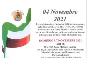 L'Amministrazione Comunale di Goito in occasione della FESTA DELL'UNITA' D'ITALIA, esprime riconoscenza aile Forze Armate e ricorda quanti hanno sacrificato la loro esistenza e subirono immani...