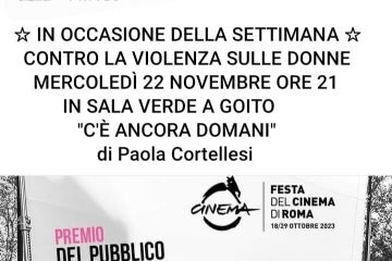 in occasione della serttimana contro la violenza sulle donnemercoledi 22 novembre 2023 alle ore 21,00 in Sala Verde a Goito verrà proiettato il film C'è ancora domani di Paola...