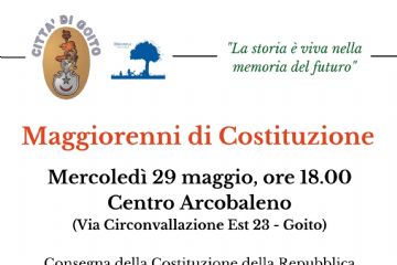 mercoledì 29 maggio alle ore 18,00 presso il Centro Arcobaleno Consegna della Costituzione ai ragazzi e ragazze che compiono 18 anni. Tutti i dettagli nel...