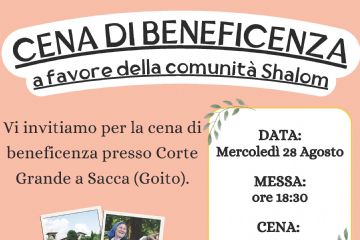Mercoledì 28 Agosto si terrà la cena di beneficenza a favore della comunità Shalom.
