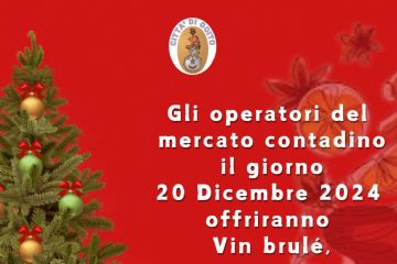 Venerdì 20 dicembre in piazza Gramsci, per l'occasione delle prossime festività, gli operatori del Mercato Contadino offriranno vin brulè, panettone e gadget alla cittadinanza....