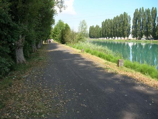 Si scende mediante un breve scivolo, si prende a sx passando sotto il ponte dei Mulini e subito a dx per una passerella sull'acqua che costeggia la scarpata della ferrovia in riva la Lago Superiore; e si è a Cittadella. Si costeggia la darsena della Canottieri e in fondo a via S.Maria si svolta a sx, attraversato un cancello si tiene la dx dietro le abitazioni e per un sentiero vicino ai campi si arriva al cartello di inizio della pista ciclabile Mantova-Peschiera (km.2,5); dopo averla imboccata si attraversa la strada comunale per Soave per immettersi in una carrareccia sterrata. Continuando in riva al canale Parcarello il percorso ci conduce all'argine del canale artificiale Diversivo del Mincio (km. 5). Saliti sull'argine si segue il percorso asfaltato sino al ponte che passando sull'altra riva ci porta a Bosco della Fontana, Riserva Naturale Orientata in gestione al Corpo Forestale (km.7).